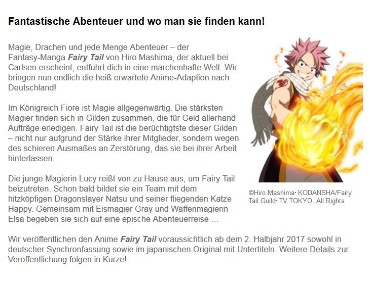 Fairy tail deutsch Indeed recently is being sought by consumers around us, perhaps one of you. People now are accustomed to using the internet in gadgets to view video and image data for inspiration, and according to the name of this post I will talk about about Fairy Tail Deutsch.
